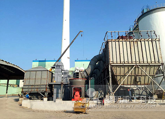 合格的石灰石塊料通過(guò)鏟車(chē)送入原料斗,經(jīng)手動(dòng)插板閥進(jìn)入底部的皮帶機(jī),并通過(guò)提升機(jī)輸送至立磨。物料從進(jìn)料口落入磨盤(pán)中央,在離心力的作用下,物料從磨盤(pán)中央向邊緣均勻移動(dòng),經(jīng)過(guò)磨盤(pán)上的粉磨輥道區(qū)域時(shí),受到磨輥的碾壓,大塊物料直接被壓碎,細(xì)粒物料受擠壓后形成料床進(jìn)行粒間研磨。被研磨的物料繼續(xù)向磨盤(pán)邊緣移動(dòng),直到被風(fēng)環(huán)處的強(qiáng)氣流帶走,而較大的顆粒物料又重新掉落到磨盤(pán)上繼續(xù)研磨。氣流中的物料經(jīng)過(guò)上部的分析機(jī)時(shí),在分析機(jī)的作用下,粗顆粒重新回到磨盤(pán)上粉磨,合格的細(xì)粉隨氣流一起出磨。細(xì)度合格的細(xì)粉出磨后進(jìn)入脈沖收塵器,并通過(guò)底部出料口之間的鎖風(fēng)閥進(jìn)入倉(cāng)泵進(jìn)行輸送。混入物料的鐵塊等雜物隨物料運(yùn)動(dòng)到磨盤(pán)邊緣時(shí),由于自身重量大而不能被風(fēng)吹起,跌落至磨機(jī)下腔,從排渣口排出機(jī)外。